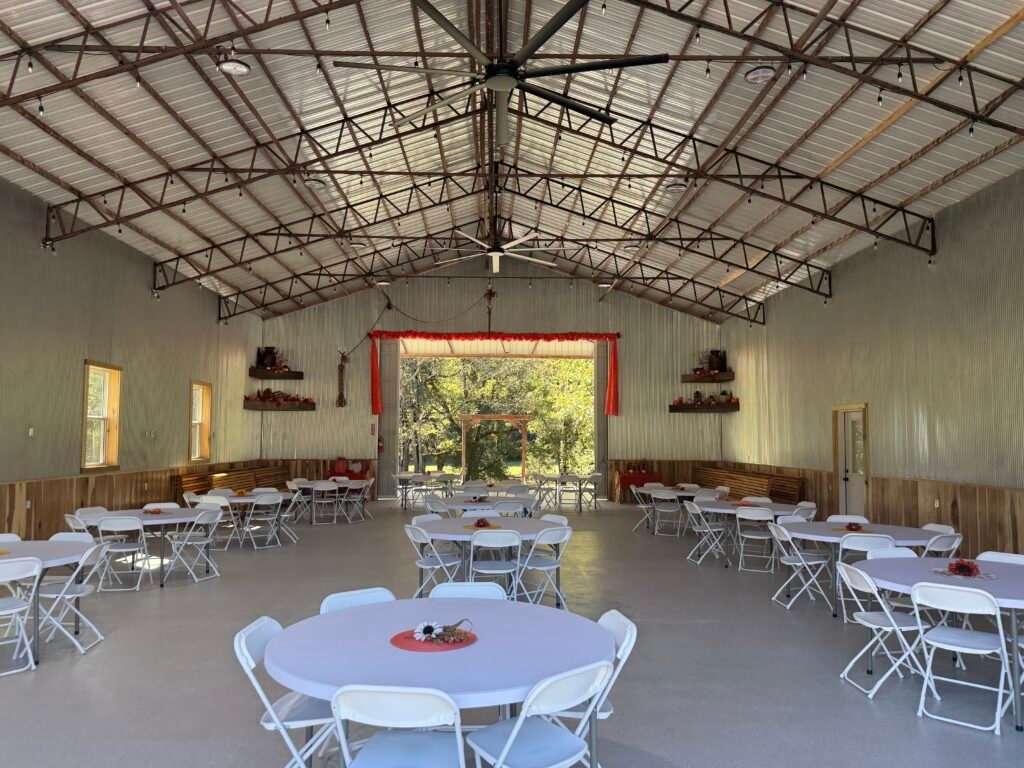 Sounds of birds chirping their calming melodies provide a beautiful backdrop of God’s Creation. The venue is located on the banks of a beautiful winding creek which provides numerous wedding site options as well as a perfect place for children to play during summer parties. The rolling hills and immaculate landscape offer an attractive backdrop for photography.